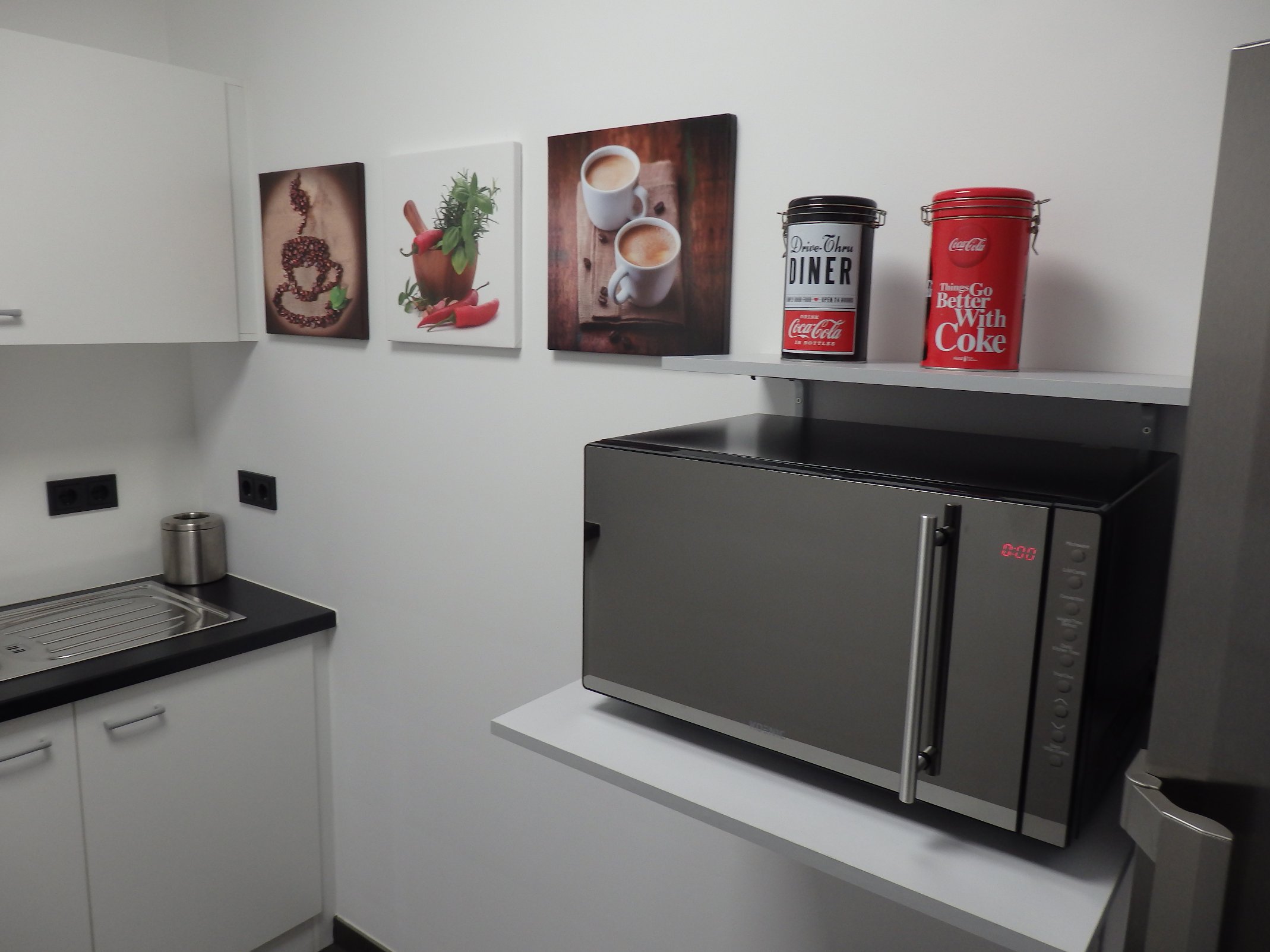 Eine Gemeinschaftsküche und Sanitäranlagen sind vorhanden.